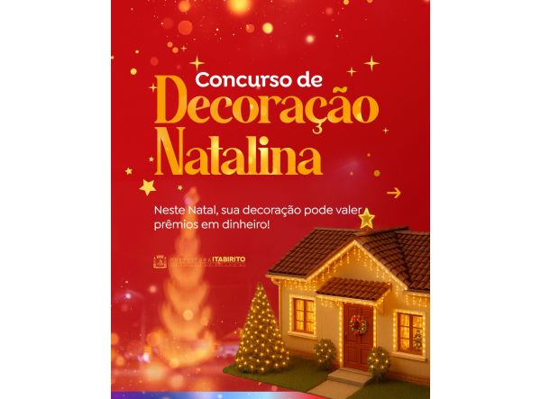 ITABIRITO:A Prefeitura de Itabirito lançou o Concurso de Decoração Natalina 2025, que promete premiar as decorações mais criativas e encantadoras da cidade. As inscrições estão abertas de 28 de outubro a 3 de novembro, e podem ser feitas pelo site oficial do município: